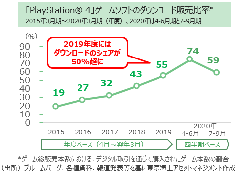 両社ともにゲームソフトのダウンロード販売が普及したことなどにより、デジタル関連収益の割合は、足元では約80%超に達しています。