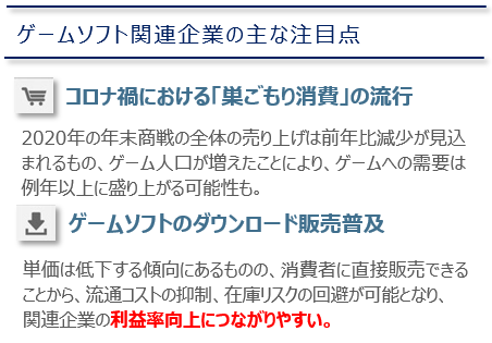 今回はゲーム人口の増加 ダウンロード販売の普及が注目ポイントに