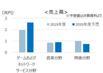 巣ごもり消費の需要をうけて、同社の娯楽分野事業の売上高及び営業利益が好調